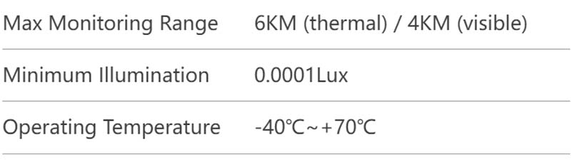 Canal de imagem térmica: resolução 640 × 512 com um alcance de detecção de até 6KM